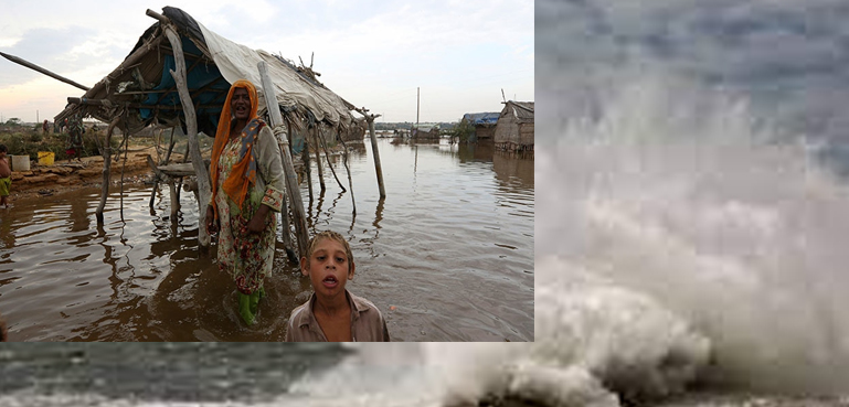 ٹھٹھہ کی ساحلی پٹی پر سمندر میں طغیانی کے باعث کیٹی بندر اور کھارو چھان تحصیل کے 12 سے زائد دیہات زیر آب آگئے ہیں۔