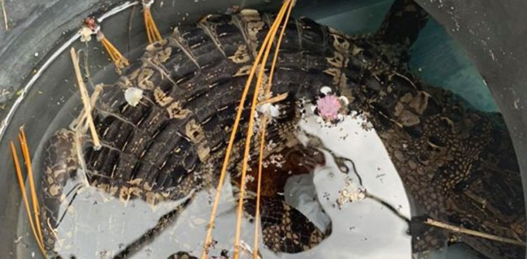 گھر کے سوئمنگ پول میں 9 فٹ لمبے مگر مچھ کی آمد