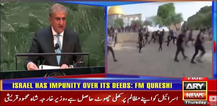 نیویارک: وزیر خارجہ شاہ محمود قریشی نے کہا کہ اسرائیلی ظلم سے جان چھڑانے کا وقت آگیا، ہمیں غزہ میں ایک عالمی محافظ فوج تعینات کرنی چاہیے۔