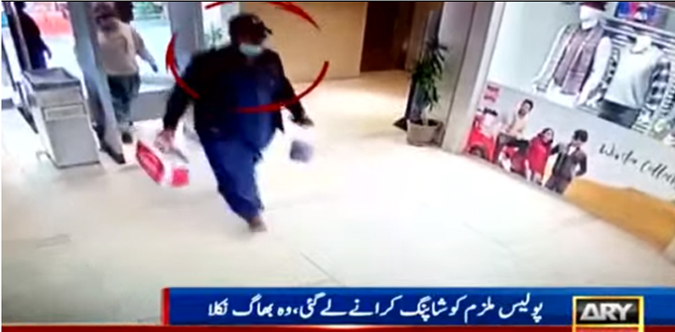 سی سی ٹی وی فوٹیج کی مدد سے ملزم کی تلاش جاری ہے، ملزم شاپنگ مال میں داخل ہونے سے قبل خریداری کرچکا تھا۔