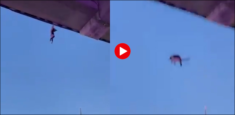 ویڈیو میں دیکھا جاسکتا ہے کہ اسٹیڈیم کے ایک اسٹینڈ پر بلی ایک پنجے سے لٹکتی ہوئی نظر آرہی ہے اور بعدازاں وہ نیچے آگری۔