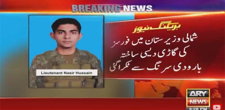 پاک فوج کے شعبہ تعلقات عامہ آئی ایس پی آر کے مطابق فورسز کی گاڑی دیسی ساختہ بارودی سرنگ سےٹکرا گئی جس کے نتیجے میں لیفٹیننٹ ناصرحسین، نائیک محمدعمران اور سپاہی عثمان اخترشہید ہوگئے۔
