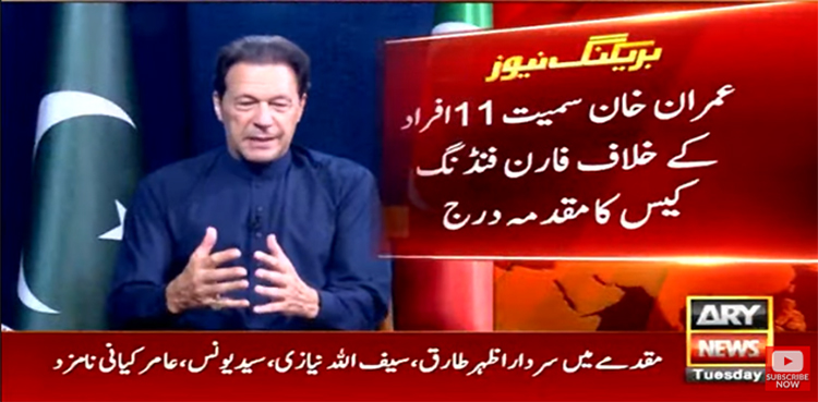 ایف آئی اے کارپوریٹ بینکنگ سرکل نے چیئرمین تحریک انصاف عمران خان سمیت 11 افراد کے خلاف فارن فنڈنگ کیس کامقدمہ درج کر لیا۔