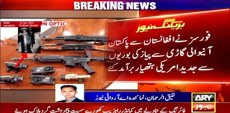 فورسز نے افغانستان سے پاکستان آنیوالی گاڑی سے پیاز کی بوریوں سے جدید امریکی ہتھیار برآمد کئے، افغانستان سے امریکی انخلا کے بعد ہتھیار کالعدم ٹی ٹی پی نے سرحد پار دہشت گردی میں استعمال کئے۔
