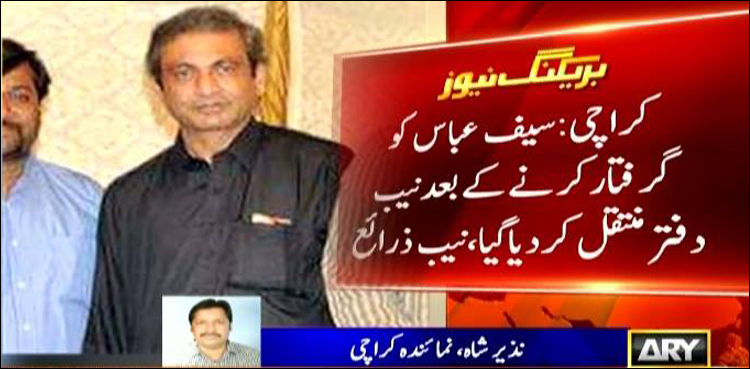 کراچی : قومی احتساب بیورو (نیب ) کراچی نے ایم کیوایم پاکستان کے رہنما سیف عباس کو کے ڈی اے میں غیرقانونی الاٹمنٹ کے الزام میں گرفتار کر لیا ہے، سیف عباس کو گرفتاری کے بعد نیب دفتر منتقل کردیا گیا۔