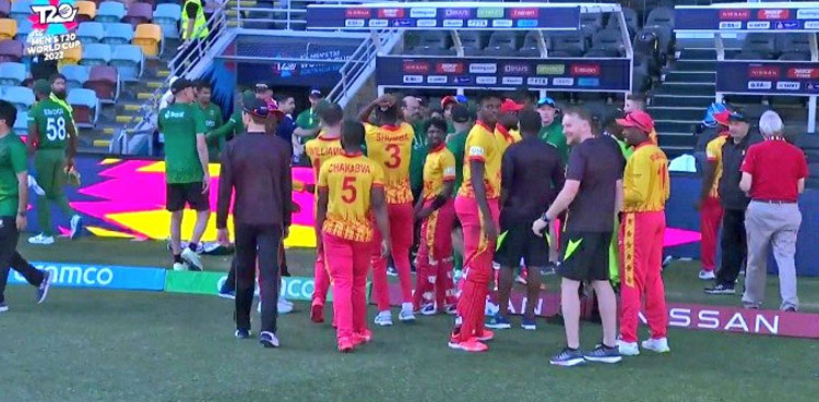 میچ میں لمحہ بہ لمحہ صورت حال تبدیل ہوتی رہی ، آخری میچ نے تو شائقین کرکٹ کے دل کی دھڑکن کو تیز کردیا، آخری گیند پر زمبابوے کو 5 رنز درکار تھے لیکن ڈاٹ بال کے باعث ٹیم کو کوئی رن نہیں ملا اورکھلاڑی مایوسی کے عالم میں پویلین کی جانب بڑھ گئے۔