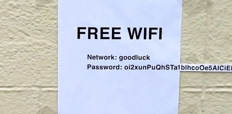 واشنگٹن: امریکی شہری نے اپنے گھر کے باہر ‘فری وائی فائی’ کا پوسٹر آویزاں کیا لیکن اس میں موجود پاس ورڈ اتنا طویل ہے کہ اسے موبائل یا لیپ ٹاپ میں درج کرنا ناممکن ہے۔