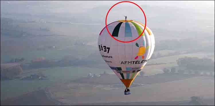 پیرس : فرانسیسی شہری نے ہزاروں فٹ کی بلندی پر اڑنے والے گیس سے بھرے غبارے پر کھڑے ہوکر ورلڈ ریکارڈ اپنے نام کرلیا۔