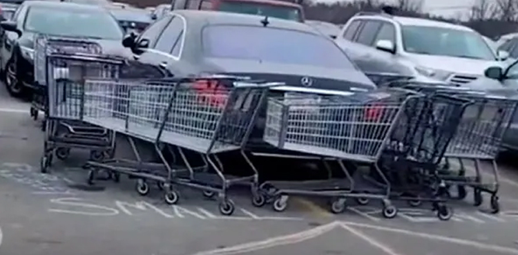 ویڈیو شیئرنگ ایپ ٹک ٹاک پر ایک ویڈیو خوب وائرل ہو رہی ہے۔ ویڈیو میں دیکھا جا سکتا ہے کہ پارکنگ میں ایک گاڑی کے اردگرد شاپنگ کارٹس کھڑی کی گئی ہیں۔
