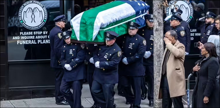 نیویارک: ڈکیتی مزاحمت پر قتل ہونے والے نیویارک پولیس کے پاکستانی افسر عدید فیاض کی نماز جنازہ ادا کر دی گئی۔