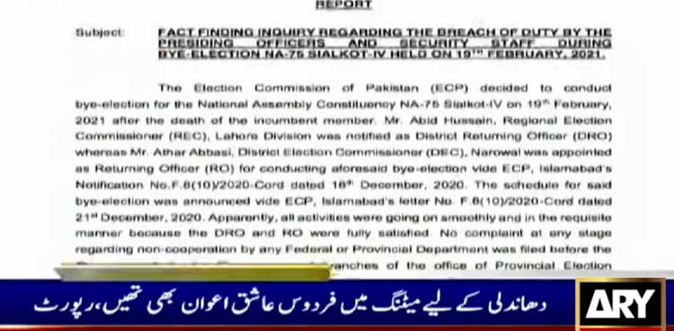 این اے75ڈسکہ ضمنی الیکشن: انکوائری رپورٹ فردوس عاشق اعوان پربھی انگلیاں اٹھ گئیں