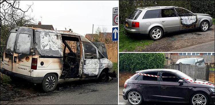 برطانیہ: مسلح افراد کے گروہ نے ایک رات میں 39 گاڑیوں کو آگ لگادی