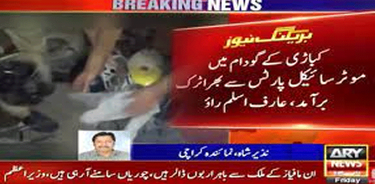 تفصیلات کے مطابق کراچی کے علاقے اجمیر نگری میں خفیہ اطلاع پر اےوی ایل سی نے چھاپہ مارا، چھاپے کے دوران کباڑی کے گودام میں موٹرسائیکل پارٹس سے بھراٹرک برآمد کرلیا گیا۔