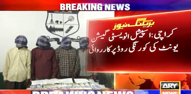 تفصیلات کے مطابق اسپیشل انویسٹی گیشن یونٹ کی کورنگی روڈ پر کارروائی کرتے ہوئے بینکوں سے کیش لے کر نکلنے والے لوگوں کو لوٹنے والے ڈکیت گینگ کے 4ملزمان گرفتار کرلیے۔