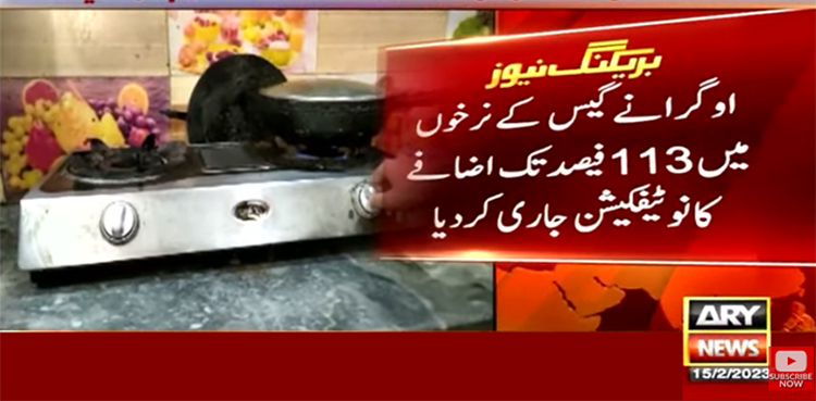 آئل اینڈ گیس ریگولیٹری اتھارٹی (اوگرا) نے گیس کے نرخوں میں 113 فیصد تک اضافےکا نوٹیفکیشن جاری کر دیا۔