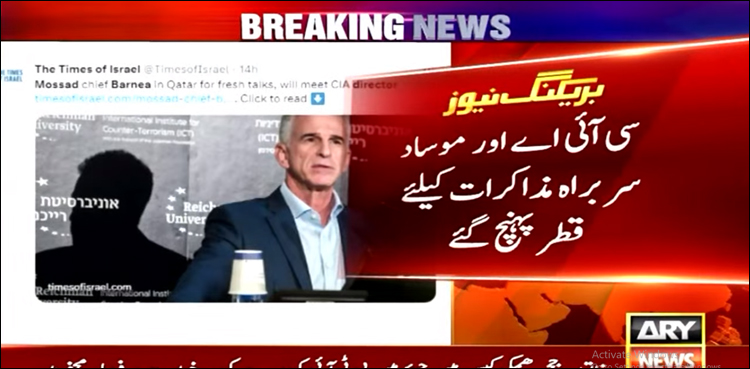 اس سلسلے میں امریکی اور اسرائیلی خفیہ ایجنسیوں سی آئی اے اور موساد کے سربراہان مذاکرات کے لیے قطر پہنچ گئے ہیں، دونوں انٹیلیجنس سربراہان قطری وزیر اعظم اور مصری حکام کے ساتھ ملاقاتیں کریں گے۔