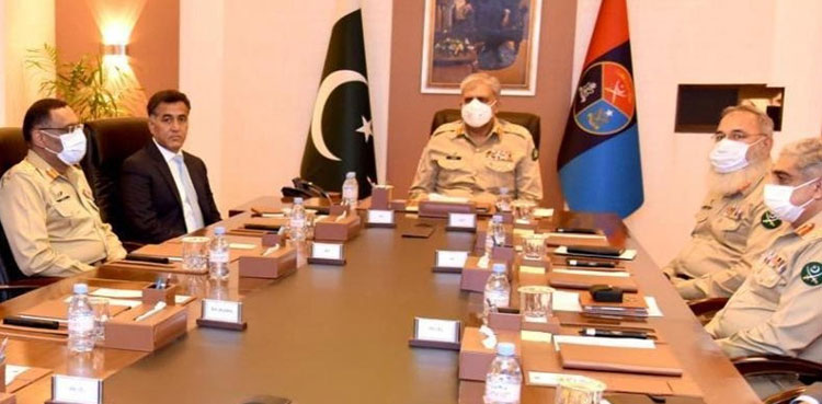 کانفرنس میں پاک افغان بارڈرکی صورتحال،احتیاطی اقدامات پربھی گفتگو ہوئی ، آرمی چیف نے مؤثربارڈرمینجمنٹ نظام پراطمینان کااظہار کرتے ہوئے کہا بارڈرمینجمنٹ سےنقل و حرکت اور داخلی سیکیورٹی صورتحال کنٹرول میں ہے۔
