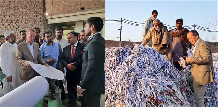 اسلام آباد: پاکستان میں تعینات جرمنی کے سفیر مارٹن کوبلر نے وسطی پنجاب میں کاغذ بنانے والی ایک فیکٹری کا دورہ کیا اور مقامی سطح پر کاغذ بنانے کے دل چسپ عمل کا مشاہدہ کیا۔