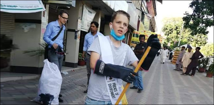 سوشل میڈیا پر وائرل ہونے والی تصویر کے مطابق پاکستان میں نئے قائم مقام جرمن سفیر ڈاکٹر جینز یوکش اپنے بیٹے کے ہمراہ آبپارہ مارکیٹ کی صفائی کرتے ہوئے پائے گئے۔