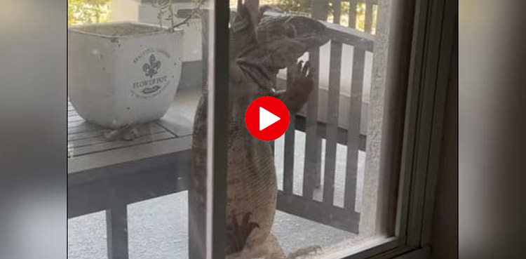 ویڈیو میں دیکھا جاسکتا ہے کہ دیوہیکل چھپکلی کھڑکی سے گھر میں گھسنے کی کوشش کر رہی ہے اور ایسا لگتا ہے کہ یہ کھانے کی تلاش میں ہے۔