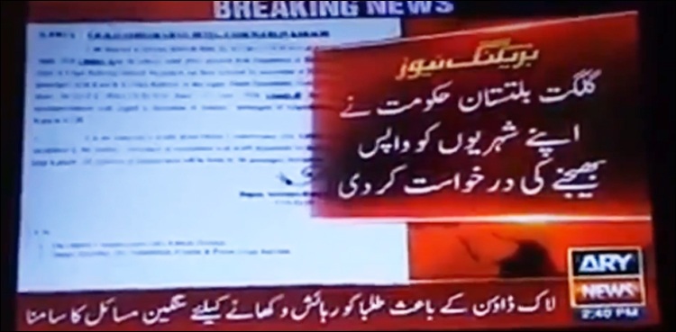 گلگت بلتستان کی حکومت نے سندھ حکومت سے اپنے شہریوں کو واپس بھیجنےکی درخواست کردی، گلگت بلتستان حکومت کی جانب سے محکمہ داخلہ سندھ کو مراسلہ بھیجا گیا ہے۔