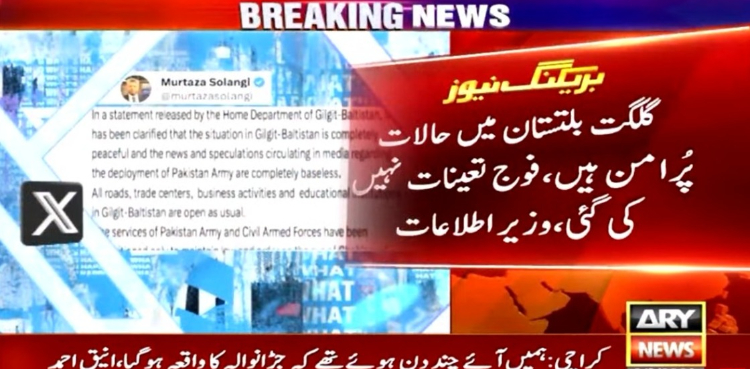 تفصیلات کے مطاق نگران وفاقی وزیر اطلاعات مرتضیٰ سولنگی نے جاری کردہ ٹوئٹ میں لکھا کہ محکمہ داخلہ گلگت بلتستان کے مطابق وہاں صورتحال مکمل طور پر پُرامن ہے۔