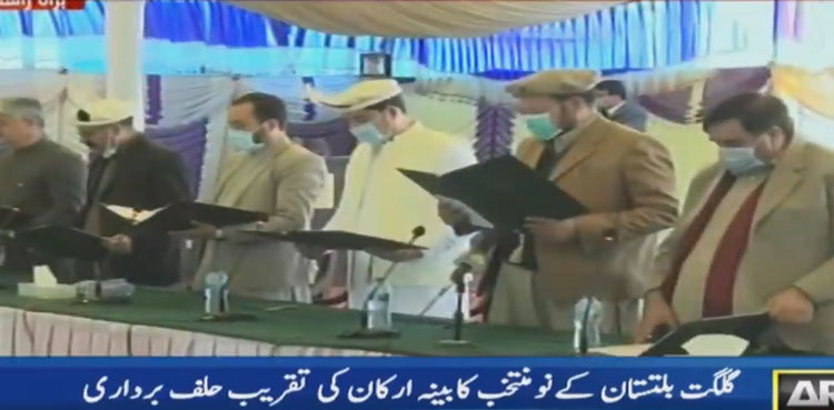 گلگلت: گلگت بلتستان کے نومنتخب کابینہ ارکان نے حلف اٹھا لیا ہے، گورنر راجا جلال حسین نے اراکین سے حلف لیا، وزیراعظم عمران خان نے تقریب حلف برداری میں خصوصی شرکت کی۔