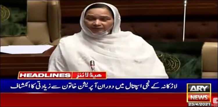 اے آر وائی نیوز کی رپورٹ کے مطابق سندھ اسمبلی کے اجلاس میں رکن اسمبلی رعنا انصار نے لاڑکانہ کے نجی اسپتال میں پیش آنے والے واقعے سے متعلق انکشاف کیا۔