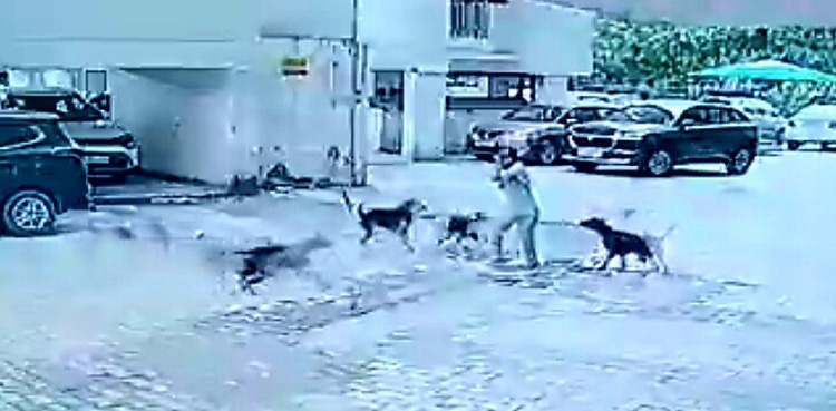 ویڈیو میں دیکھا جاسکتا ہے کہ کتوں کے خوف سے بچی رو رہی ہے اور ادھر ادھر دوڑتے ہوئے کتوں سے بچنے کی کوشش کررہی ہے لیکن کتوں نے اسے چاروں طرف سے گھیرا ہوا ہے اور اسے کاٹنے کی کوشش کرہے ہیں۔