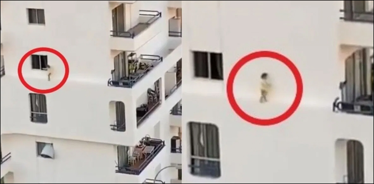 ویڈیو میں دیکھا جاسکتا ہے کہ بچی کھڑکی سے باہر نکل کر چوتھی منزل پر بنے انتہائی تنگ پلیٹ فارم پر پہنچ گئی اور واپس دوبارہ کھڑکی سے اندر چلی گئی اور کسی بھی ناخوشگوار واقعے سے محفوظ رہی۔