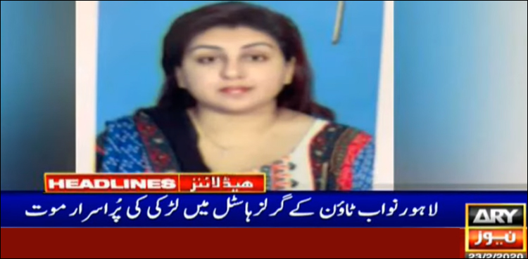 تفصیلات کے مطابق لاہور کے علاقے نواب ٹاؤن میں گرلز ہاسٹل سے لڑکی کی لاش ملی ہے جس کی شناخت سحر خان کے نام سے ہوئی، 32 سالہ سحر خان کا تعلق گارڈن ٹاؤن سے ہے۔