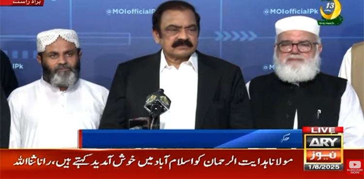 اسلام آباد میں نائب امیر جماعت اسلامی پاکستان لیاقت بلوچ کی وفد کے ہمراہ مشیر برائے سیاسی امور راناثناللہ سے ملاقات ہوئی جس کے بعد پریس کانفرنس کرتے ہوئے راناثنااللہ نے کہا کہ وزیراعظم بلوچستان کےمسائل حل کرنےکیلئےپرعزم ہیں۔