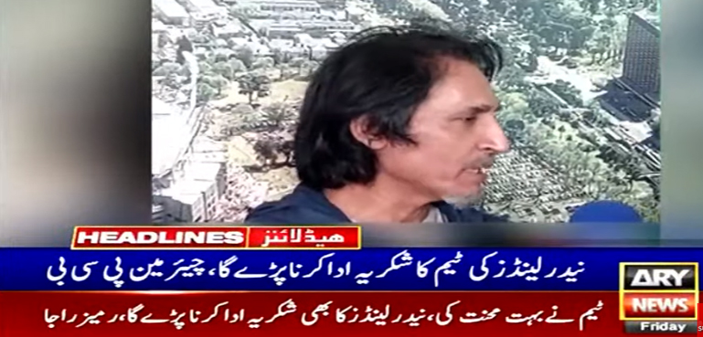 پاکستان کرکٹ بورڈ کے چیئرمین رمیز راجا نے کہا ہے کہ قومی ٹیم محنت کرکے فائنل میں پہنچی ہے مگر ہمیں نیدر لینڈ کی ٹیم کا بھی شکریہ ادا کرنا پڑے گا۔