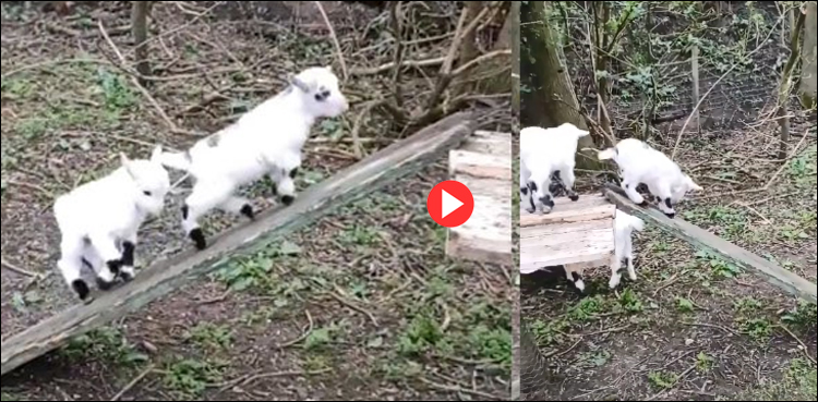 انٹرنیٹ پر ایک ایسی دلچسپ ویڈیو وائرل ہوئی جس میں بکری کے بچے غیر روایتی طور پر شرارت کر کے محظوظ ہورہے ہیں۔