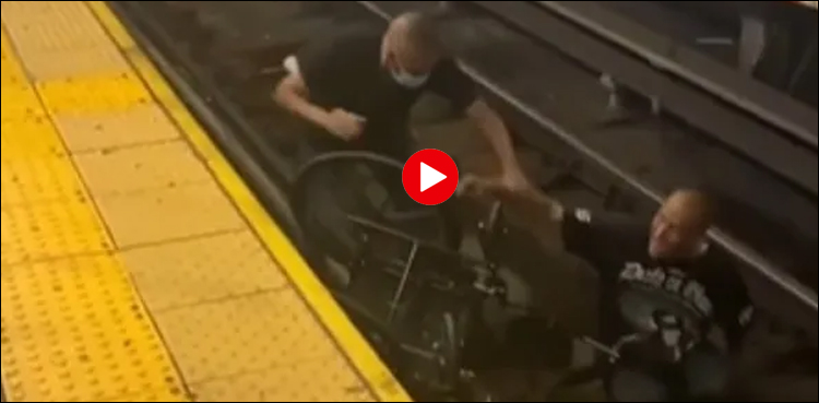 امریکی ریاست نیویارک میں وہیل چیئر پر بیٹھا معذور شخص ریلوے ٹریک پر گر گیا جسے ٹرین کی آمد سے قبل ایک نوجوان نے بچالیا۔