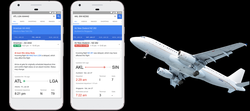 گوگل کی جانب سے ایپلیکشن میں یہ سہولت بھی فراہم کی گئی ہے کہ کوئی بھی صارف اپنا فلائٹ نمبر درج کر کے اُس کا شیڈول اور اڑان کا وقت دیکھ سکے گا نیز یہ کہ اگر فلائٹ تاخیر کا شکار ہوئی تو اُس سے بھی صارف کو آگاہ کیا جائے گا۔