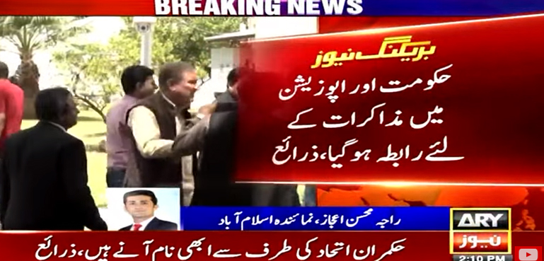 اے آر وائی نیوز کو حکومتی ذرائع سے ملنے والی اطلاعات کے مطابق ملک میں ایک ساتھ الیکشن کرانے کے معاملے پر حکومت اور اپوزیشن میں مذاکرات کے لیے رابطہ ہوگیا ہے اور یہ مذاکرات آج شام 6 بجے سینیٹ میں شروع ہوں گے۔