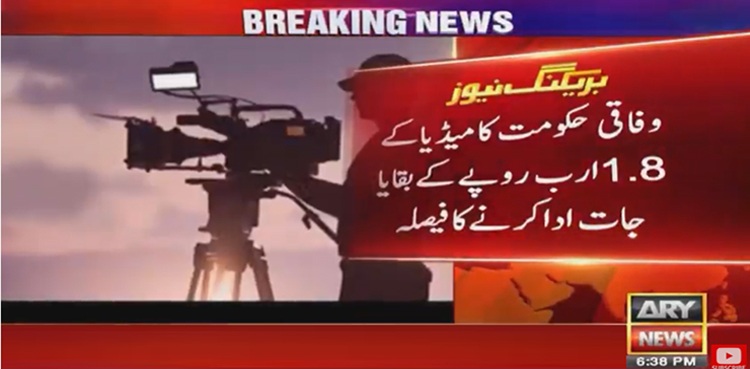 اسلام آباد: میڈیا انڈسٹری کی مشکلات کو کم کرنے کے لیے وفاقی حکومت نے میڈیا کے بقایاجات ادا کرنے کا فیصلہ کیا ہے۔