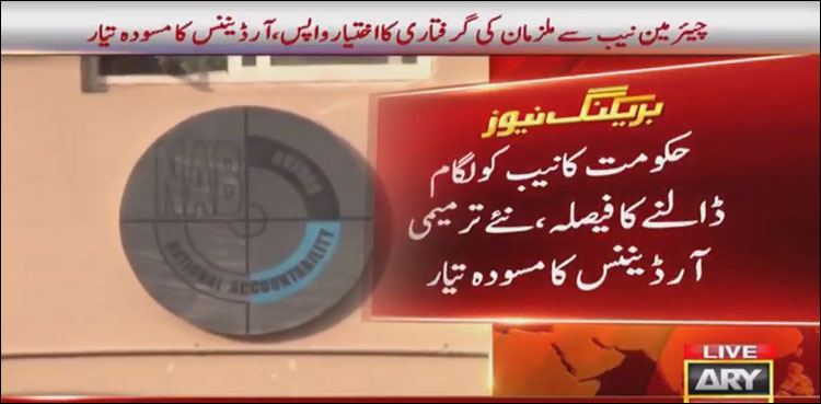 اسلام آباد : حکومت کی جانب سے نیب قانون میں تبدیلی کے لئے نئے ترمیمی آرڈیننس کا مسودہ تیار کرلیا گیا، جس کے تحت چیئرمین نیب سے ملزمان کی گرفتاری کا اختیار واپس لیا جائے گا۔