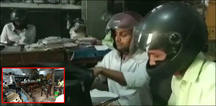 بھارت: سرکاری ادارے کے ملازمین ہیلمٹ لگا کر کام کرنے پرمجبور