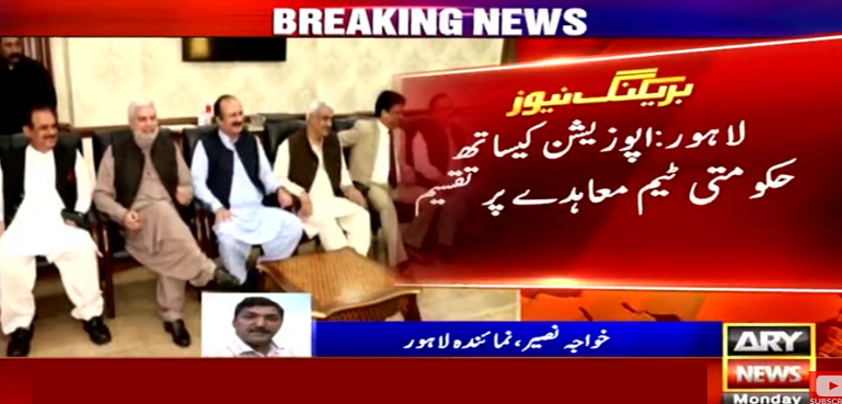 دوسری جانب اپوزیشن سے معاہدے پر حکومتی ٹیم میں دراڑ پڑ گئی ہے اور حکومتی رکن خلیل طاہر سندھو احتجاجاً ایڈوائزری کمیٹی سے واک آؤٹ کرگئے۔