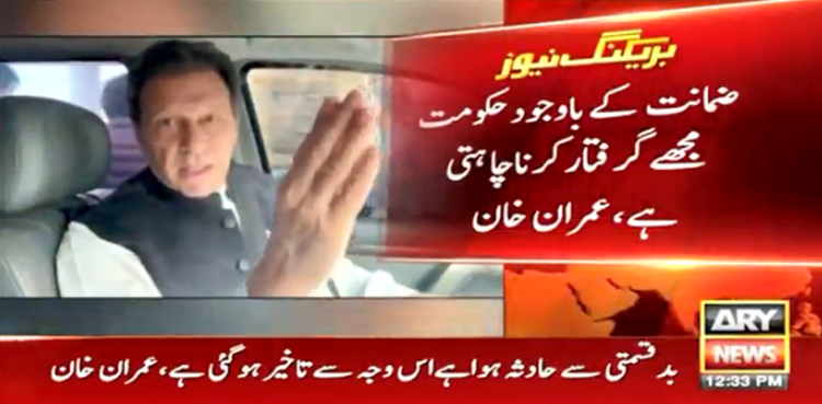 عمران خان کا کہنا تھا کہ مجھے گرفتار کرنے کا انہوں نے پورا پلان بنا رکھا ہے، اس سے حکومت کی بدنیتی ثابت ہوتی ہے، میں اسلام آباد کی عدالت میں پہلے بھی جارہا تھا کہ انہوں نے میرے گھر پر حملہ کیا۔