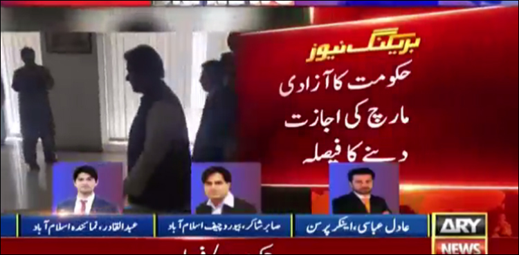 حکومت نے آزادی مارچ کی مشروط اجازت دینے کا فیصلہ کرتے ہوئے مارچ کی اجازت سپریم کورٹ اور اسلام آباد ہائی کورٹ کے فیصلوں پر عمل سے مشروط کردی۔