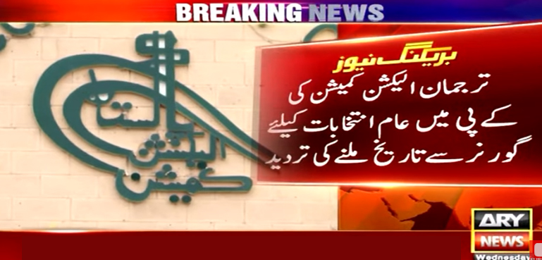 الیکشن کمیشن نے کے پی میں عام انتخابات کیلیے گورنر سے تاریخ ملنے کی تردید کردی ہے اور ترجمان کا کہنا ہے کہ گورنر خیبرپختونخوا نے الیکشن کے حوالے سے کوئی تاریخ نہیں دی ہے۔