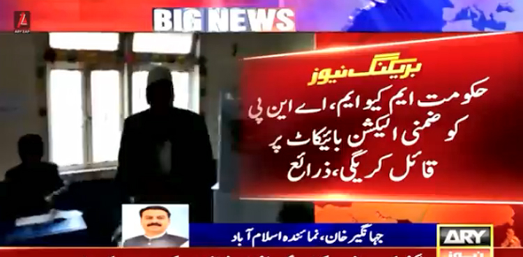 ذرائع کے مطابق حکومت ایم کیو ایم، اے این پی کو ضمنی الیکشن لڑنے سے روکے گی،جس کے بعد ضمنی الیکشن بائیکاٹ پر اتحاری جماعتوں کا مشترکہ بیان جاری کیا جائے گا۔