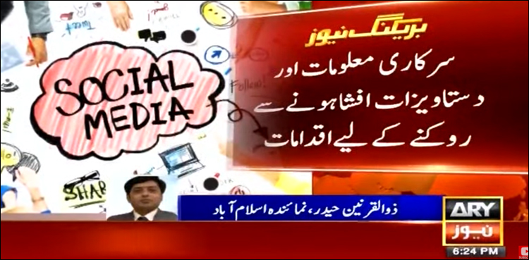 اے آر وائی نیوز کے مطابق سرکاری اداروں سے وابستہ تمام ملازمین کے سوشل میڈیا استعمال کرنے پر فوری پابندی عائد کی گئی ہے۔