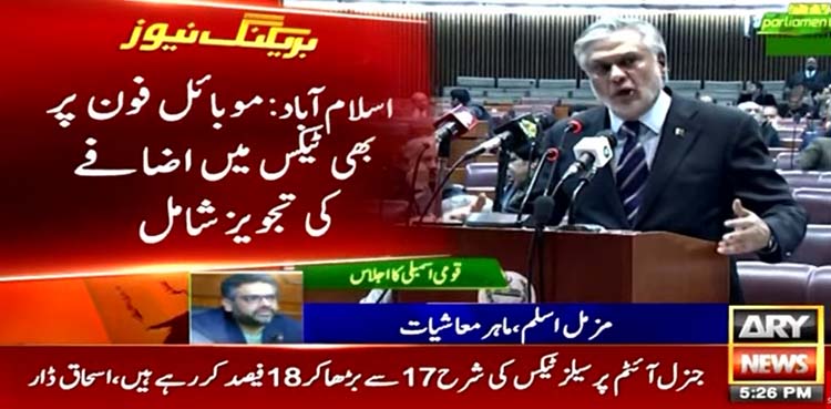 اے آر وائی نیوز کے مطابق ضمنی مالیاتی بل میں 500 ڈالر سے مہنگے موبائل فون پر جی ایس ٹی 25 فیصد کرنے کا فیصلہ کیا گیا ہے جبکہ یہ ٹیکس درآمدی موبائل فون پر بڑھانے کی تجویز ہے۔