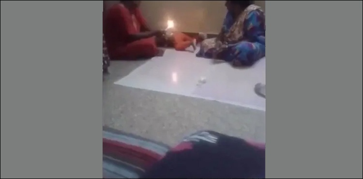 ویڈیو میں دیکھا جاسکتا ہے کہ بے درد خاتون نے بچے کے ہاتھ پکڑ رکھے ہیں اور وہ فرش پر بیٹھے ہوئے ہیں، خاندان کی ایک اور عورت بھی قریب بیٹھی یہ سب دیکھ رہی ہے۔