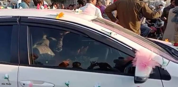 پی ٹی آئی کارکنان نے باراتیوں کو جانے کے لیے راستہ دے دیا، دلہا پی ٹی آئی کے حق میں نعرے لگاتا ہوا بارات لے کر روانہ ہوگیا۔