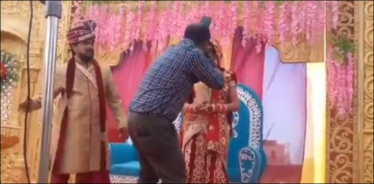 دلہے کی جانب سے فوٹو گرافر کو تھپڑ مارنے کے بعد دلہن اتنا ہنسی کہ ہنستے ہنستے اسٹیج پر ہی بیٹھ گئی، بعدازاں دلہن کے قہقہوں سے دلہا اور فوٹو گرافر بھی ہنس دئیے۔